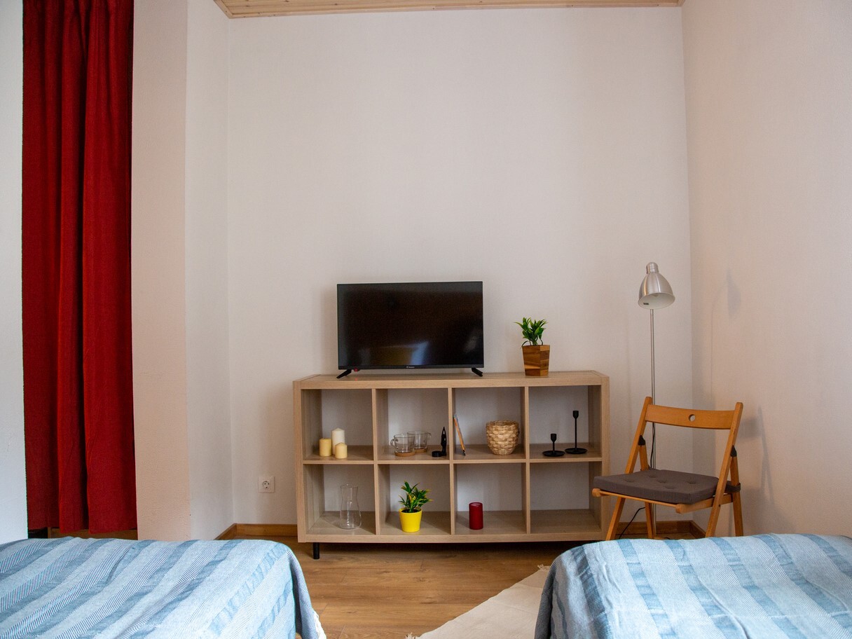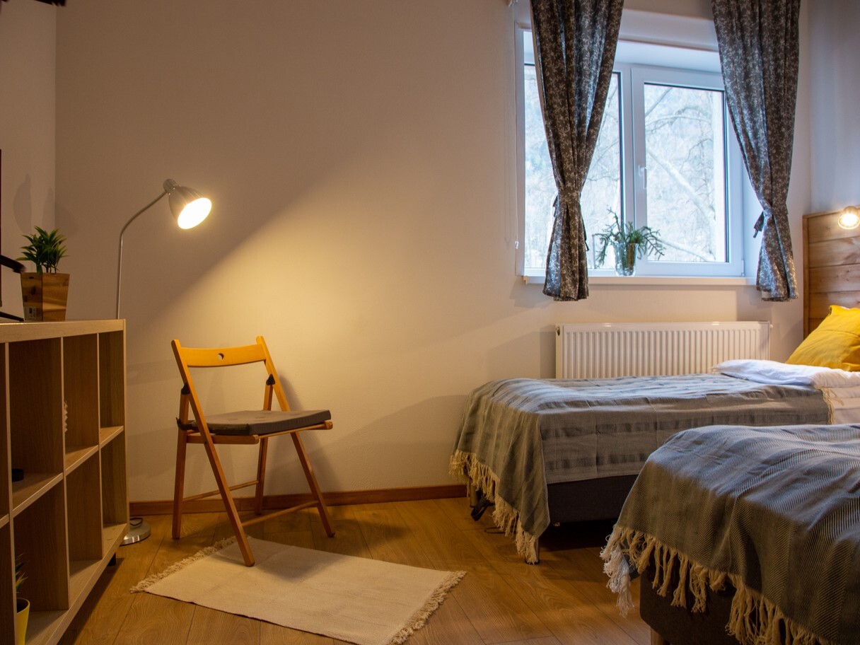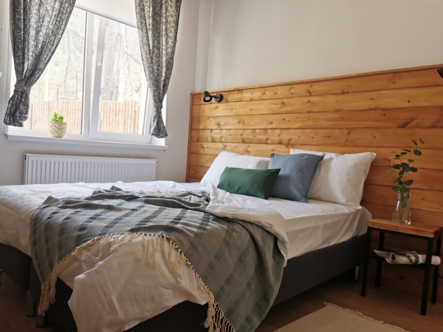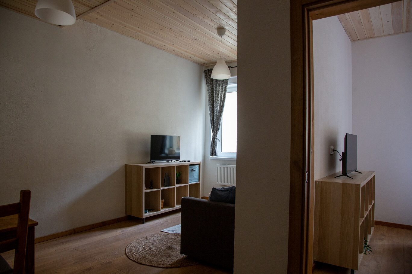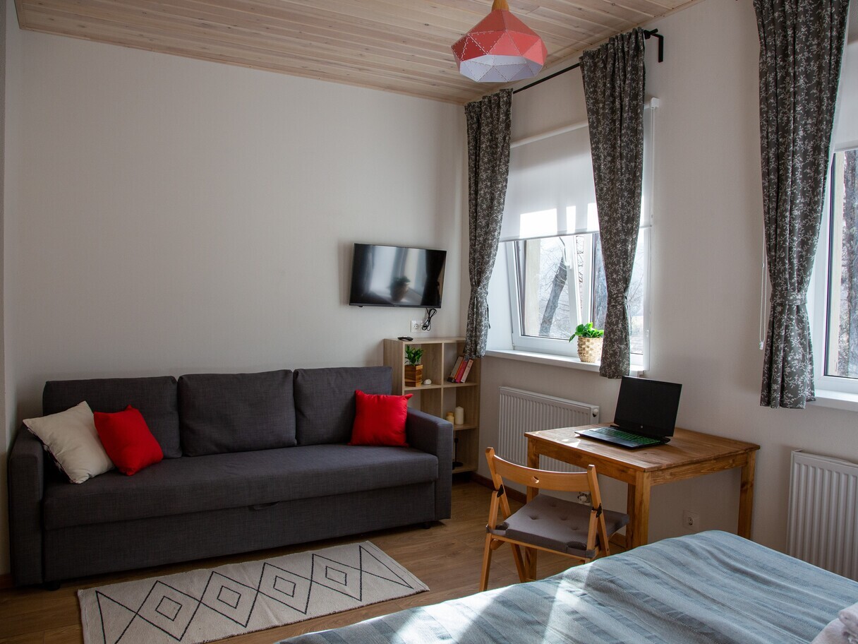 Описание - уютный двухкомнатный номер апартаменты с собственной кухней, оборудованный всем необходимым для комфортного проживания. В номере 2 комнаты, кухня-гостиная и спальня. Номер подойдет для размещения 3 взрослых или семьи из 2 взрослых и 2 детей. В номере 3 отдельных спальных места, диван-кровать и 2 отдельные кровати, кровати можно трансформировать из односпальных в двуспальную.