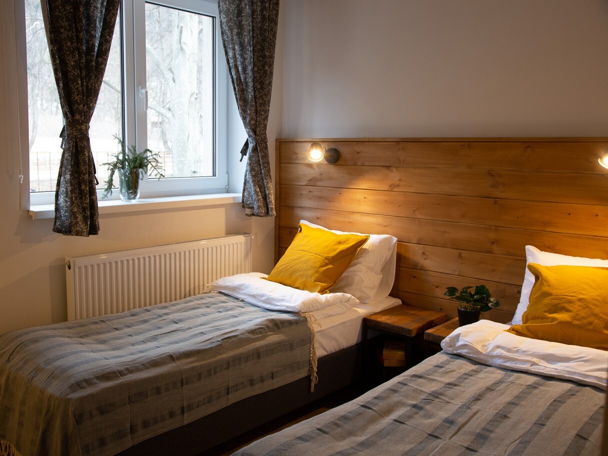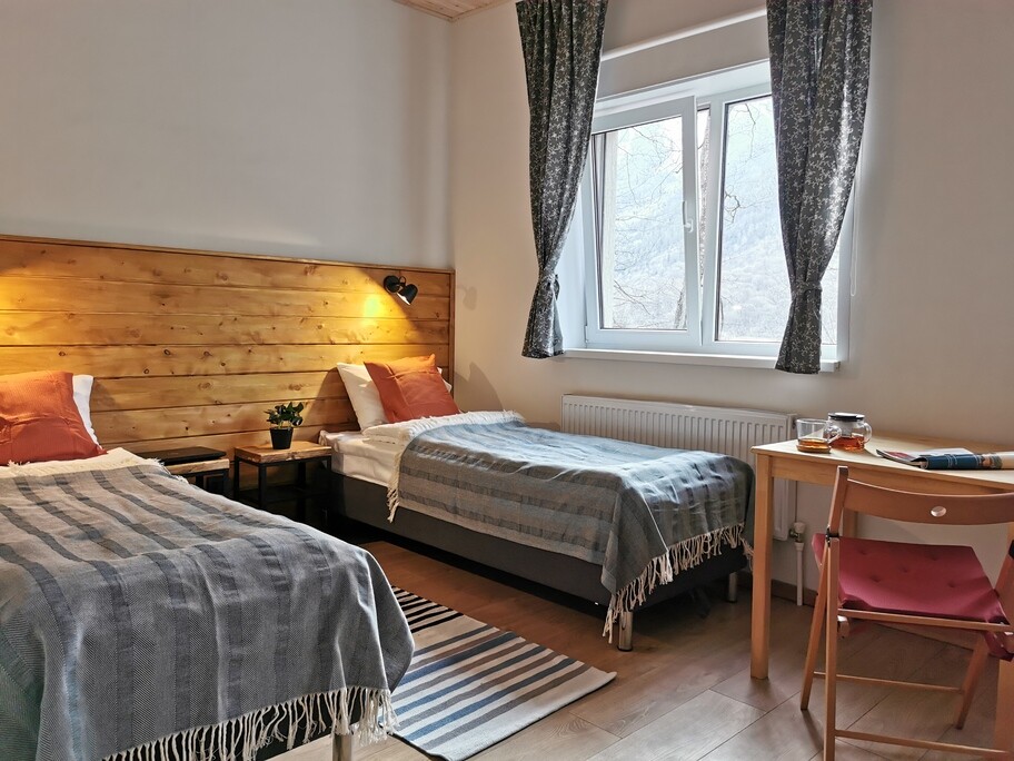 Описание - уютный номер с современным дизайном, оборудованный всем необходимым для комфортного проживания. Кровати можно трансформировать из односпальных в двуспальную.