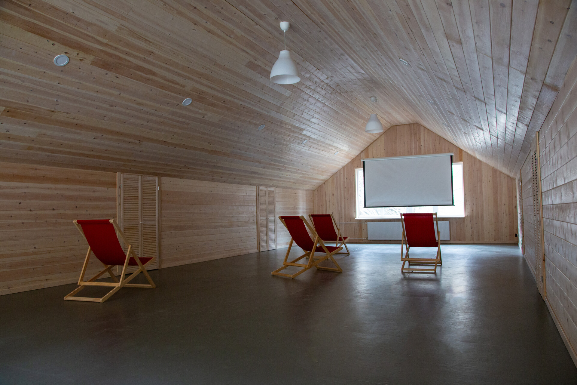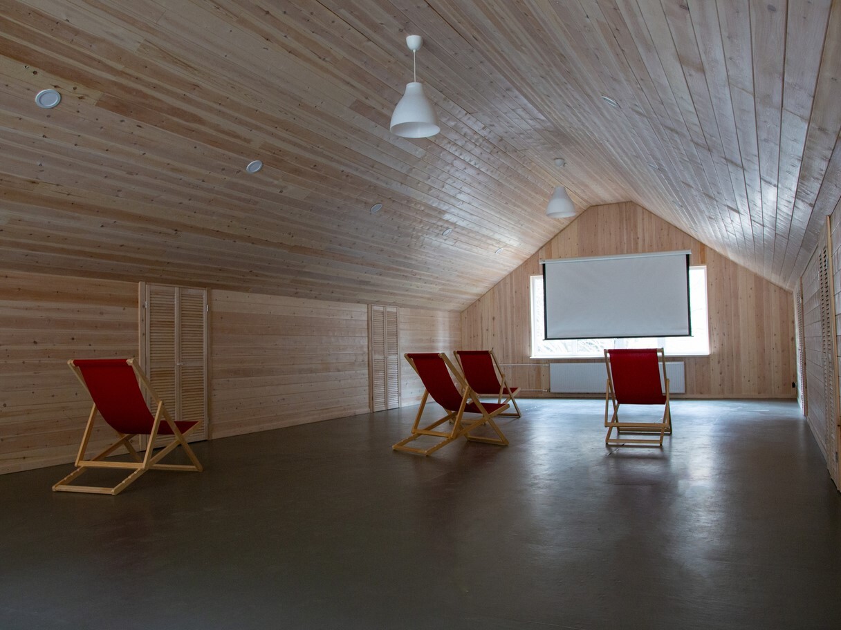 Для проведения тематических мероприятий, на 3 этаже оборудован большой, светлый зал, со сценическим линолеумом на полу. В зале есть большой экран, проектор, музыкальная колонка, пуфики, коврики для йоги.