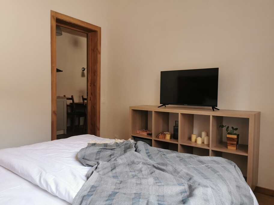 Удобства - электрический чайник, чайный набор, ТВ, Wi-Fi, место для хранения одежды, фен, собственная ванна комната.